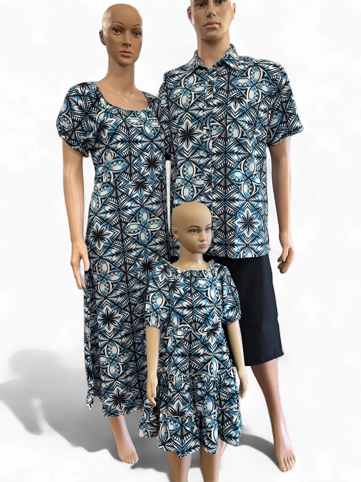 These adorable girl's dresses are part of a vibrant family matching set, perfect for special occasions, holidays, or a fun family photo shoot! Featuring traditional Pacific Island-inspired patterns, these dresses are stylish and comfortable.