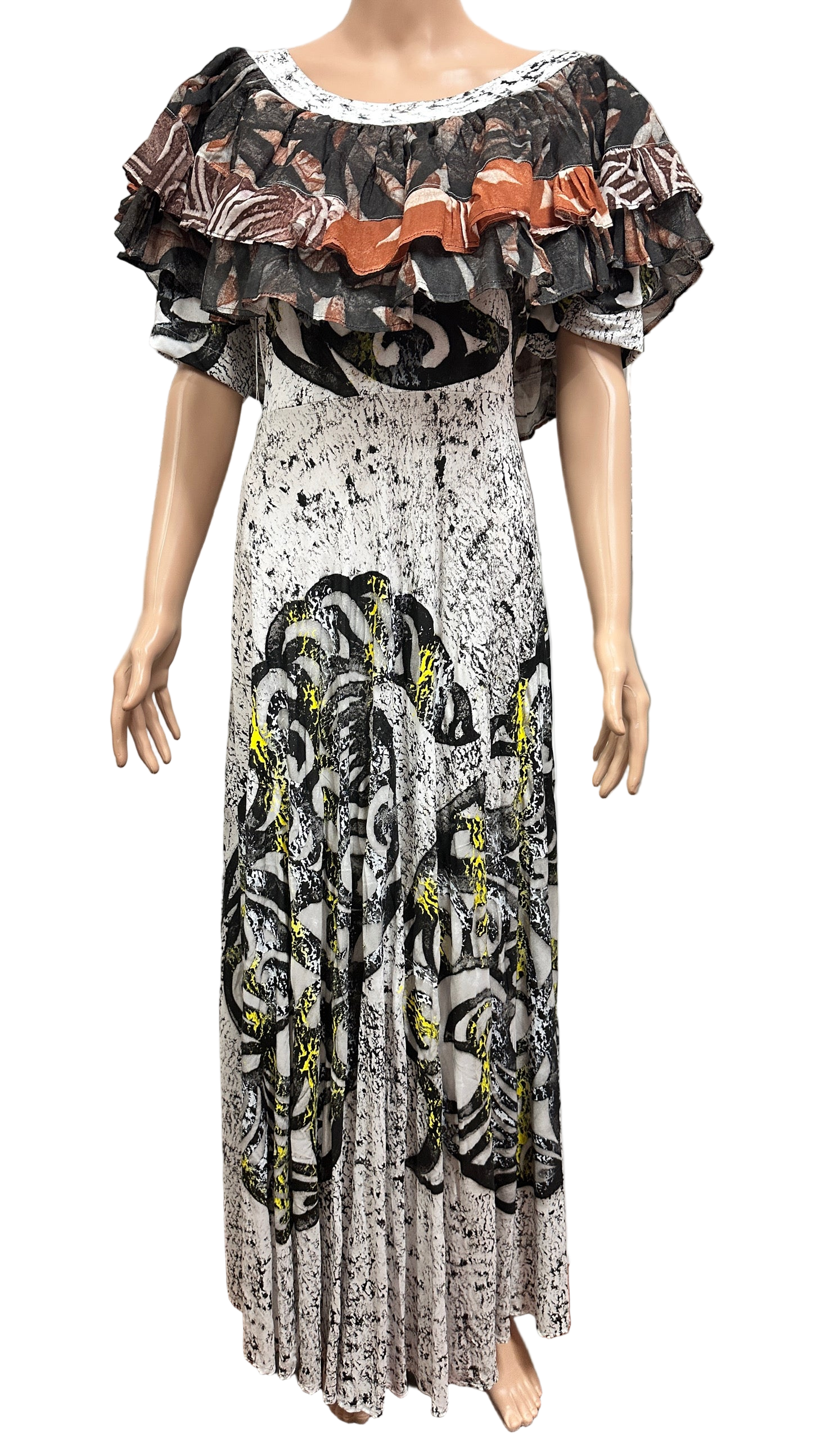 (Size 20) Hand-Painted Frilled-Neck Dress