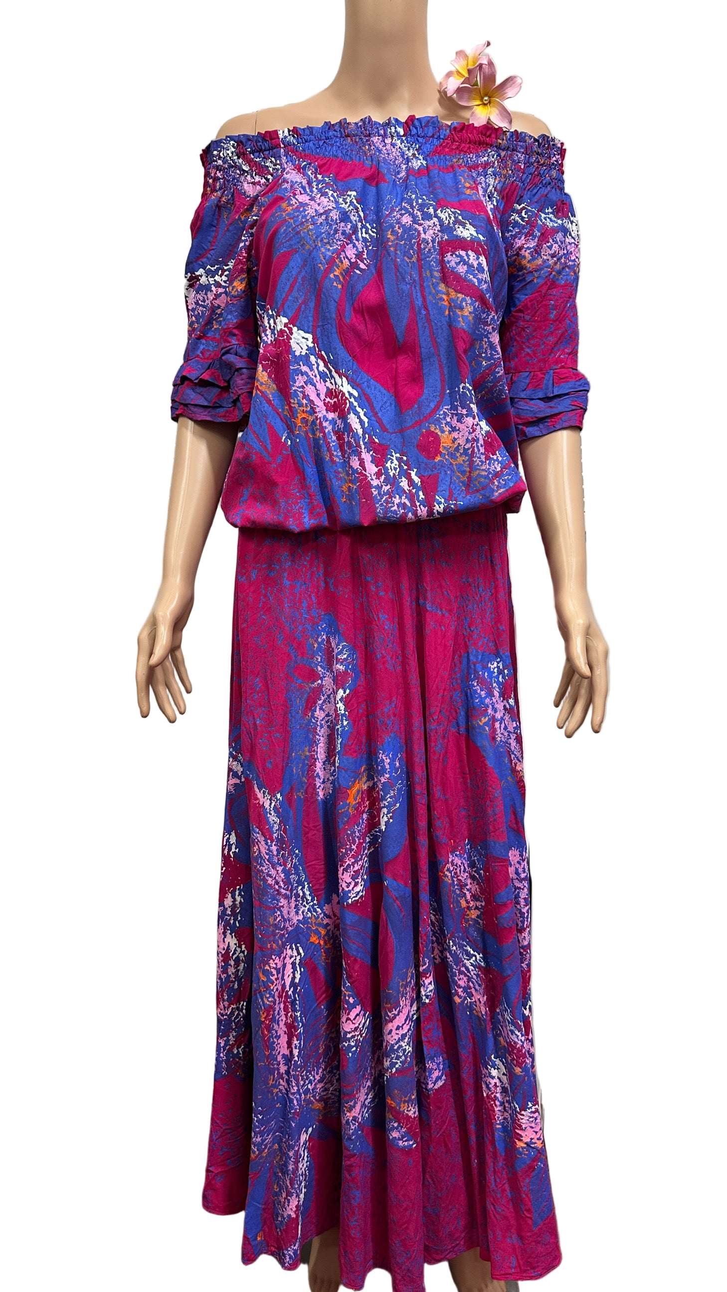 This Authentic Samoan Hand-Painted Pull-Up Dress (One-Piece) is a unique and exclusive piece of island craftsmanship. Each dress is individually hand-painted by skilled Samoan artisans, ensuring no two designs are ever the same.
